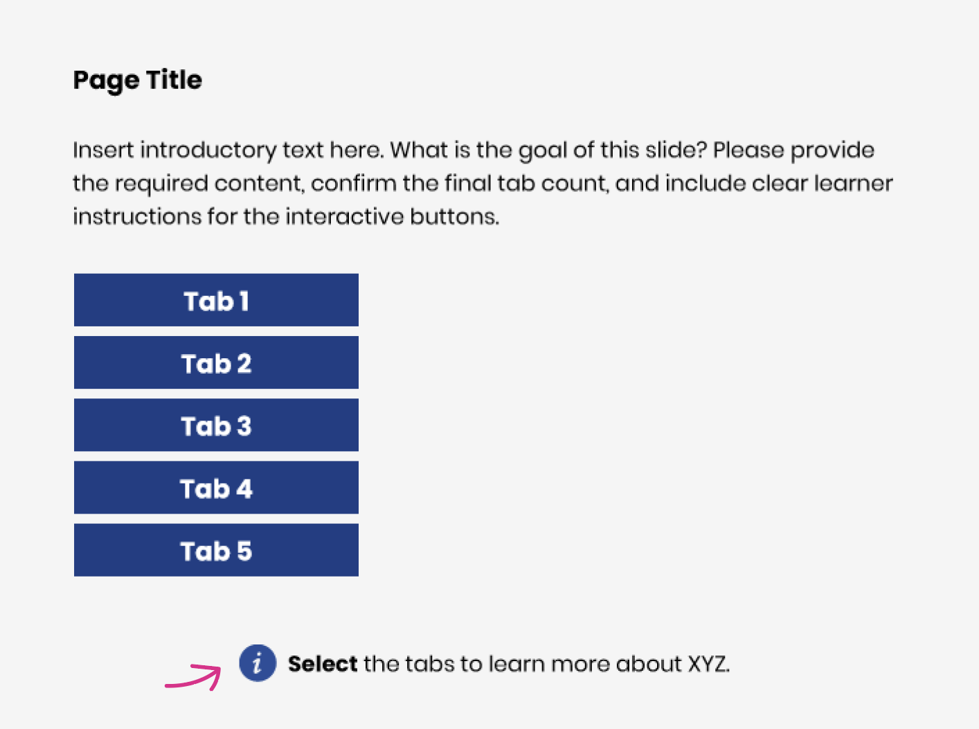 Interactive tab layouts are a staple in my eLearning toolkit. Why? Because they are one of the most effective ways to break up heavy blocks of text and give the learner control over their pace.